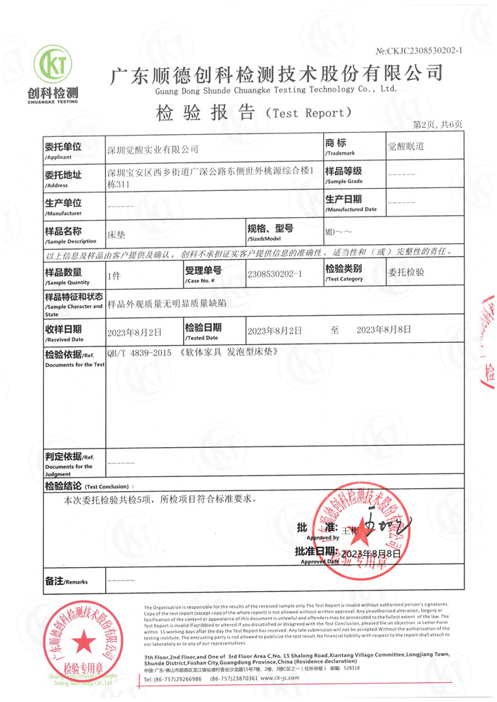 覺(jué)醒眠道2023質(zhì)檢報(bào)告